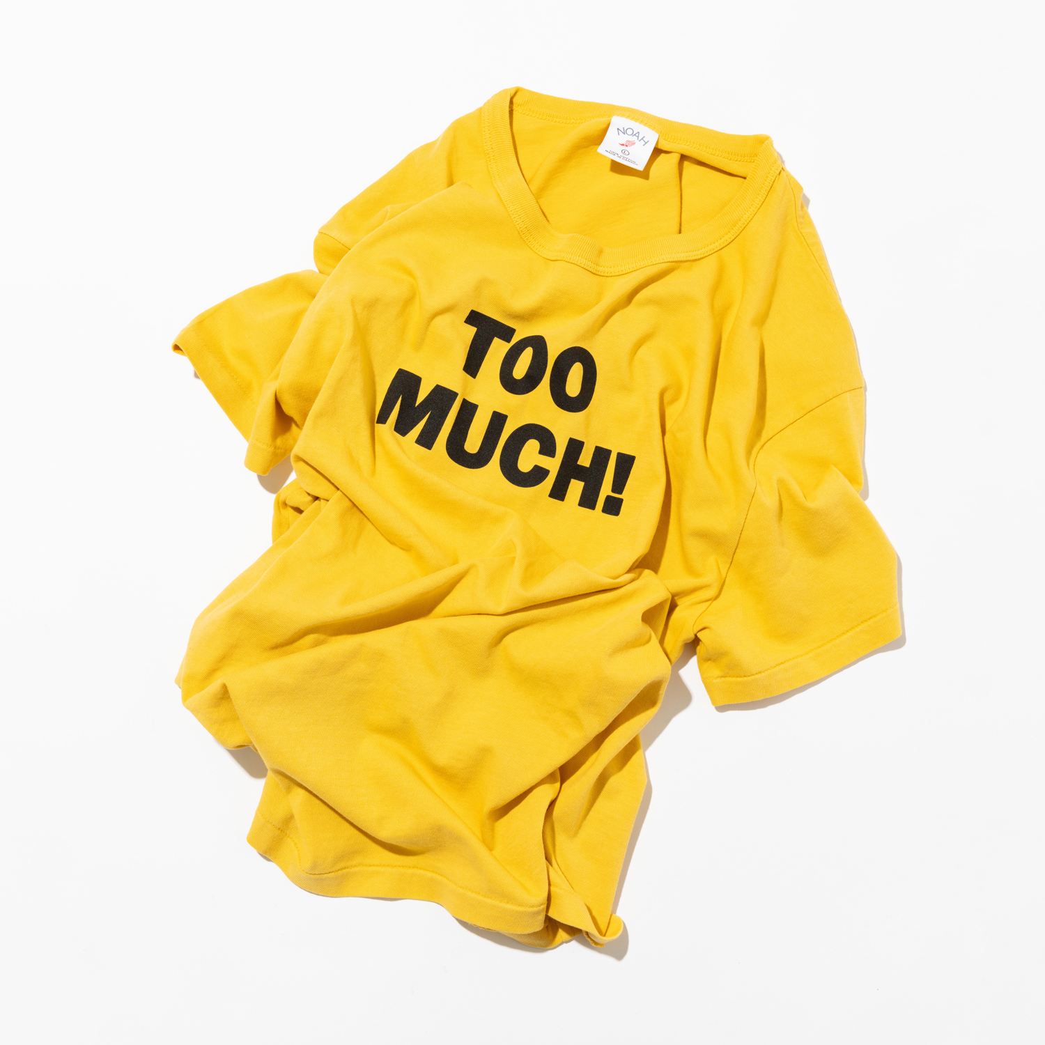 〈NOAH〉のグラフィックTシャツ。どことなくスーベニアのようで、ヴィンテージライクなデザインに心がくすぐられた。胸元に配されたTOO MUCHの文字は、何事も過剰に感じられる現代社会に対する、ブランドからのメッセージだろうか。ユーモアを含みながら、生産背景や労働環境といった見えない部分と向き合う彼らの、精神性を強く感じる1着。¥12100