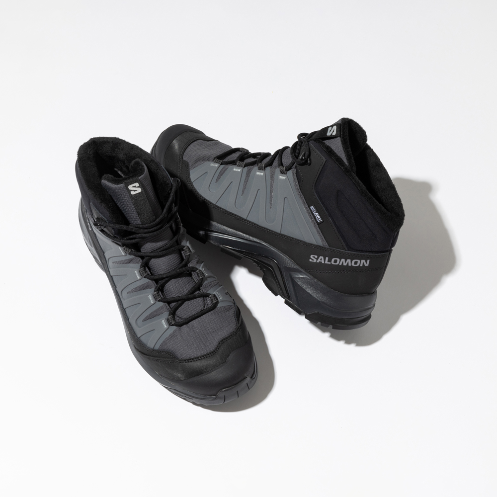 東京は雪が降る機会が少ないが、雪の降る地域は冬の足もとが厄介だ。凍った地面や膝下まである雪道を歩く時、長靴という選択肢に絞られてはファッションが楽しめない。そんな時に〈Salomon〉のウィンターブーツは、防水で足もとが濡れるのを防いでくれ、強力なグリップも備える。暖かくドライな履き心地は、街中でも雪道でも、ソリッドな出立ちで縦横無尽に力を発揮する。¥18700
