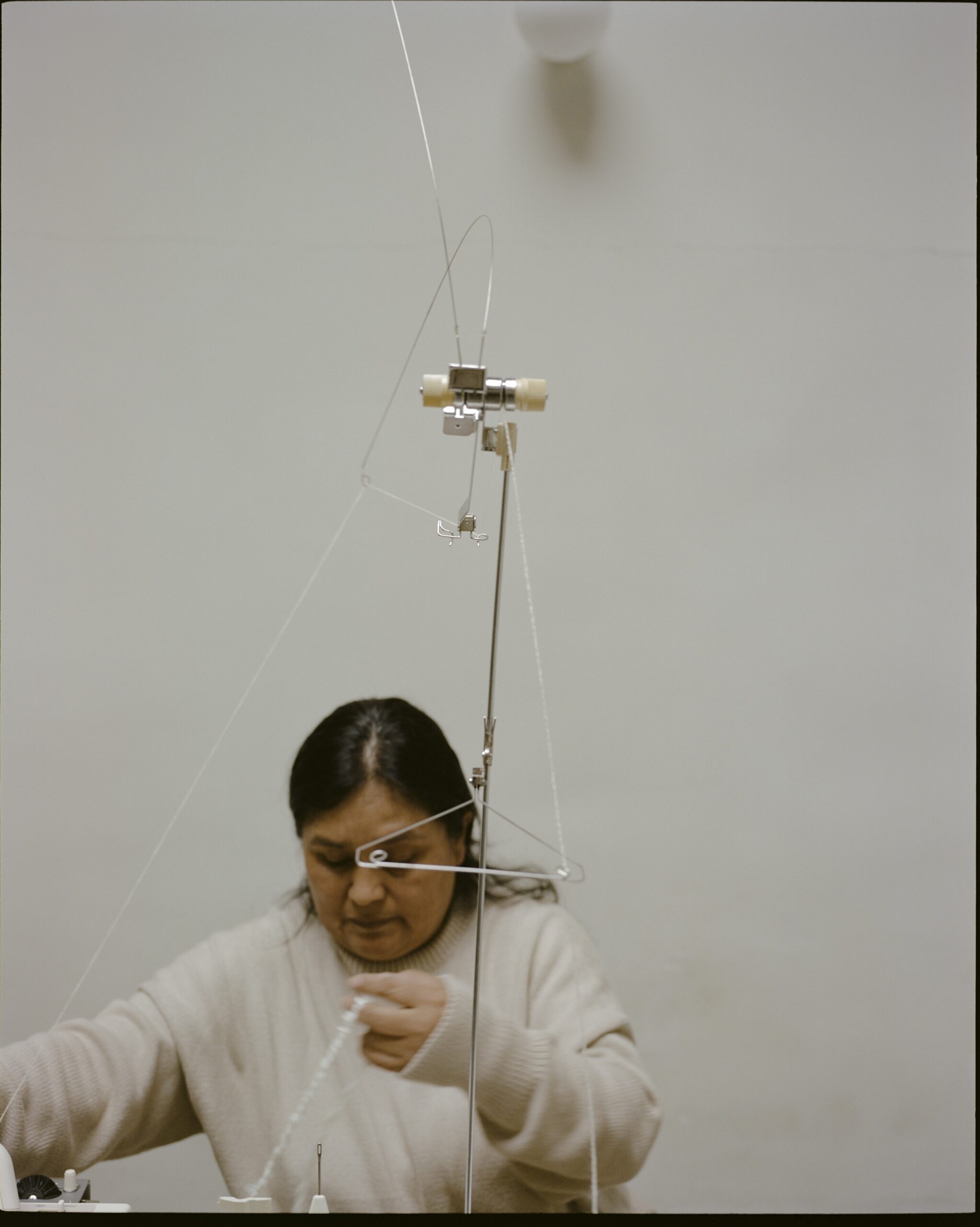 つくり手の意図を押しつけるのではなく、素材そのものを尊重する。素材が主役として見えてくる彼らの在り方は、一見すると理想的にも映る。しかし、尊重するということは、素材に全てを委ねることとは異なる。素材が自由に振る舞うための舞台を整えるには、つくり手による周到な準備が求められるからだ。この透け感は、どの糸の太さから生まれるのか。この色は、温度と時間をどう組み合わせれば再現できるのか。ハッピーアクシデントを、ただの偶然で終わらせず、確かな形へと変えていく力。ローレンには、服をつくるよりも先に、テキスタイルデザイナーとして素材そのものと徹底的に向き合ってきた時間がある。ローレン・マヌーギアン「ブランドをはじめる前、デザインが効率や機械の都合で、素材の良さを無視した形に書き換えられてしまうことに強い違和感を抱いていた。だからこそ私は、実際に糸を編み、その構造や限界を把握した上で、自分の知識とすり合わせていくようにしている。コレクションの大半は、ペルーで生産していて、職人たちは確かなスキルをもっているから。そこに自分たちのアイデアを取り入れて、ひとつの洋服をつくりあげている。地道なプロセスではあるんだけど、彼らをリスペクトしているからこそ、一緒に実現できるのだと思っている」。素材の性質を深く理解し、職人と同じ言語を共有できなければ、素材が本来の性質を現すための舞台はつくれない。この背景を知った時、私たちが手にしている一着の重みが、少しずつ変わりはじめる。ローレン・マヌーギアン「ペルーで生産できる素材は実は限られていて...。でも、さっきも言った通り、私はもともとテキスタイルを学んでいたし、何より彼らに対しても、素材に対しても、敬意がある。制限はあるんだけど、時にその制限が選び取るべき道を教えてくれることもある。創造的な仕事って、手もちの道具を知り、その一番いい使い方を見つけることだと思うから。選択肢が多すぎて迷うより、限られた素材の中で工夫するほうが、ずっとクリエイティブになれるって信じている」。制約が自由を生む、と言ってしまえば、単なるきれいごとのように聞こえるかもしれない。しかし、ローレンにとって、それは、素材と長く向き合ってきた時間から生まれた、実感に基づく答えだ。選択肢が無限にあれば、判断の基準はつくり手の好みへと傾いていく。しかし目の前に制限がある時、判断の基準は自ずと素材そのものへと移っていく。そしてその制限を可能性として読み解けるのは、素材の構造を知り、職人の手仕事と言語を共有しているからにほかならない。深く知っているからこそ、制限は壁ではなく、道になる。