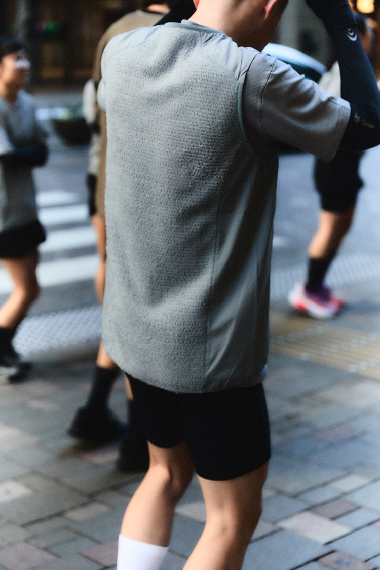 〈Goldwin〉が実施するアクティビティのセッション、『Motion Studies』。走ることを通して、体の動きと心を探究するという名目のもと、さまざまなテーマやコラボレーションを実施していくという。今回GRINDでは、走る前後の身体や衣服の状態を写真で記録して、その変化を探る実験的なセッションを企画。寒さも強まる1月末、Goldwin Marunouchi周辺を、5kmと10kmの2グループに分かれてランニングした。日常的にランニングをする人も、これからはじめてみようと考えている人も、走るという行為が身体にどのような影響を及ぼすかについて、視覚的に体験できる機会へと変換する。撮影した写真は、4月末発売予定の雑誌GRINDに掲載予定のため、ここではランニング中の様子をいくつかピックアップ。〈Goldwin〉の新たなプロダクトに身を包み、街中を駆け抜けよう。